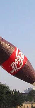 Instructions for this picture: In 1994,meeting the requirements of Chinese Agency of CocaCola Company, we designed bottle-shaped advertisement logo kite promotional kite for them. From then on, we have served many product-shaped logo kite products for many world famous enterprises.