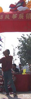 图片说明: 在由潍坊市政府举办的《潍坊首届风筝展销会》上,潘氏作坊的这只风筝应邀参加拍卖。 潘氏作坊在这次活动中,是唯一得到主办者邀请参加拍卖的风筝企业。这也是在中国首 次关于风筝的拍卖会。